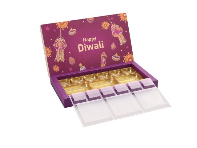 The outer paper boxes from the new 2024 Diwali Box series together with matching inner trays and lids.