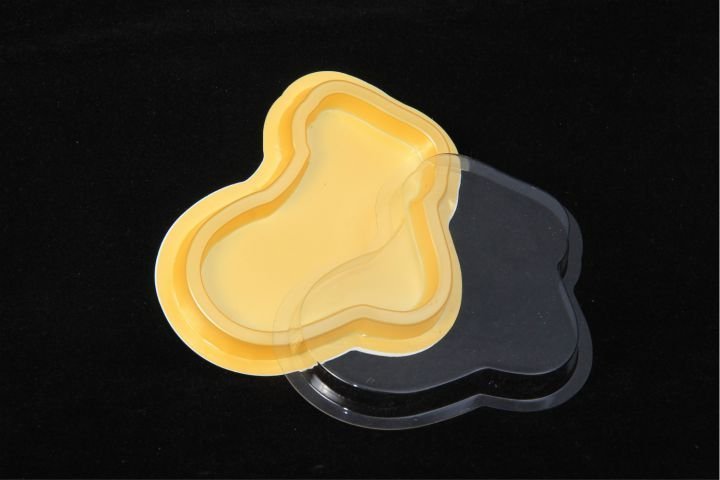 A christmas stocking shaped box with pasted paper backs for strength. Comes with transparent cover.
