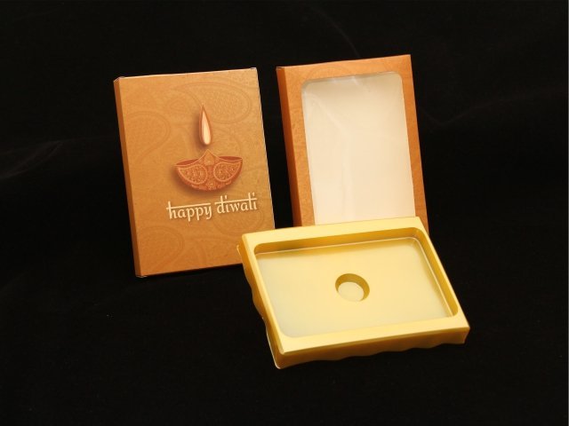 A general purpose Diwali themed greeting box with the greeting tray for 200gm chocolate slabs from the Cacao Professional Range.