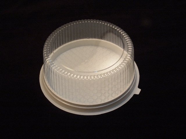 A box for packaging cakes with separate base and transparent dome.