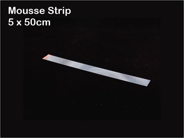 A flexible product, this strip of plastic has a food grade adhesive strip on one end. The 2 ends can be stuck to create different shapes that can be filled to form mousse cakes.