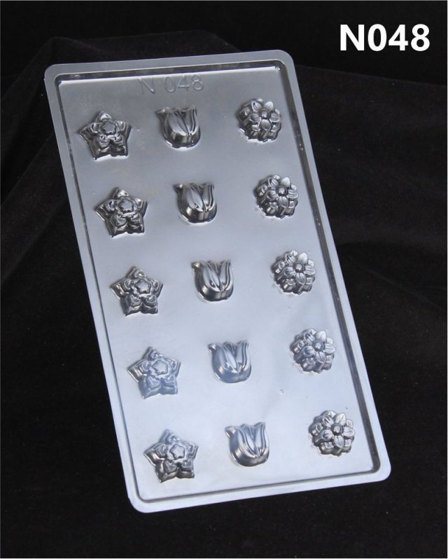 An economical range of flexible transparent plastic chocolate mould.