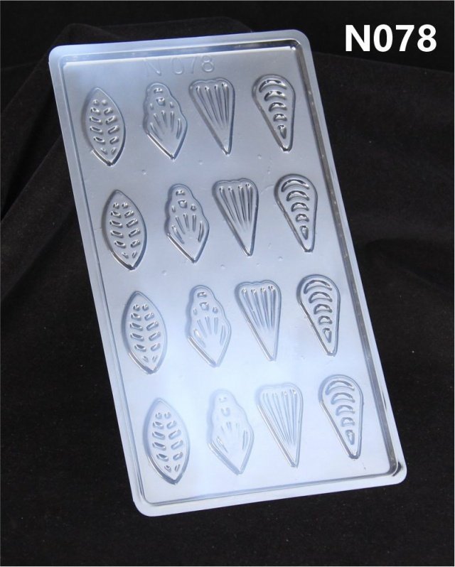 An economical range of flexible transparent plastic chocolate mould.