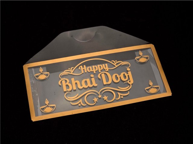 A rectangluar printed money envelope with the Bhai Dooj design.