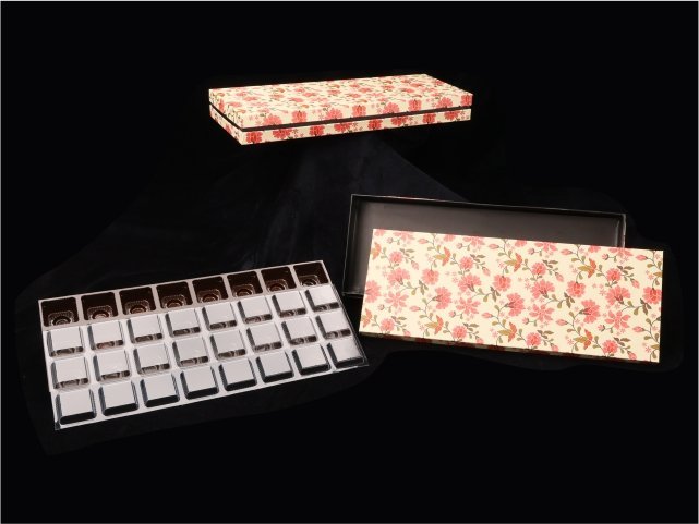 A printed rigid board box, this one fits the standard 24 cavity (8×3) trays.